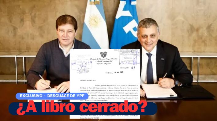 Bocadepozo.com.ar accedió en exclusiva al paquete completo de documentos –Decreto, Acuerdo de Prórroga y Proyecto de Ley– que detallan el traspaso. Los papeles, que nunca fueron difundidos por el gobierno provincial, exponen una negociación opaca que se cocinó en apenas cuatro días hábiles y que ahora la Legislatura fueguina está presionada a aprobar como simple trámite.