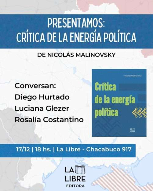 Para finalizar, el experto hizo extensiva la invitación para toda la comunidad interesada al lanzamiento de su último libro, “Critica de la energía política”, que será presentado este miércoles 17 de diciembre en la Librería y Editorial “La Libre, ubicada en Chacabuco 917 (CABA).