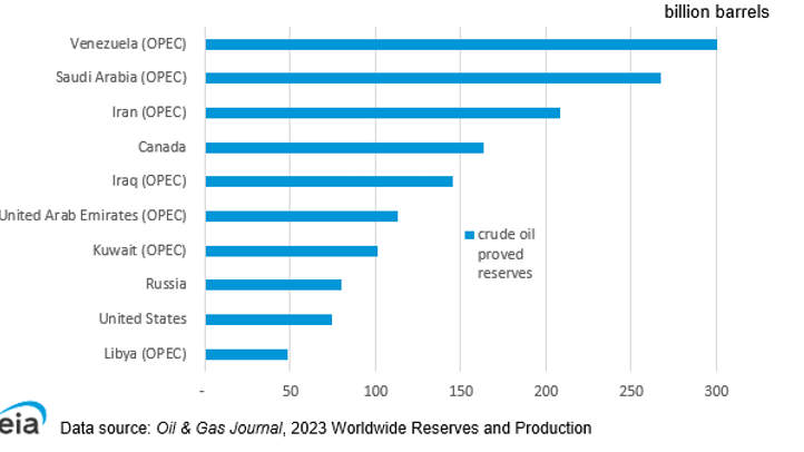 Figura 1: Ranking de reservas de petróleo probadas año 2023. Fuente: eia (2023).