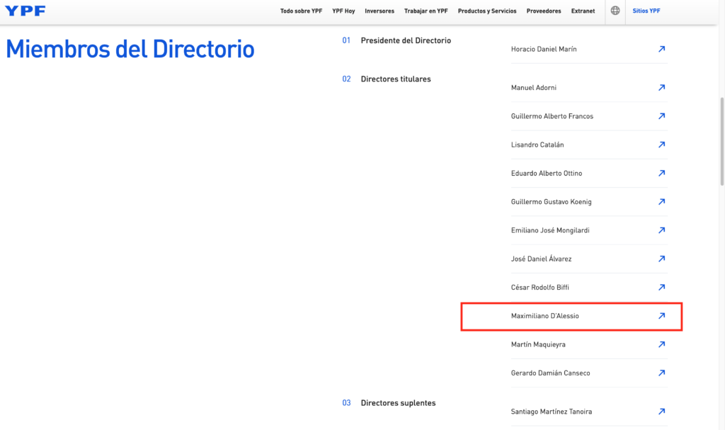 YPF: Cambios en el directorio y aparece Maximiliano D’alessio por Tierra del Fuego que pasará a ganar más de $100 Millones