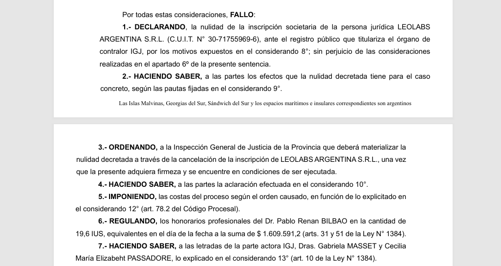 - Pérdida de la inscripción registral: la IGJ procederá a cancelar la matrícula de LeoLabs Argentina S.R.L. en el registro público provincial.