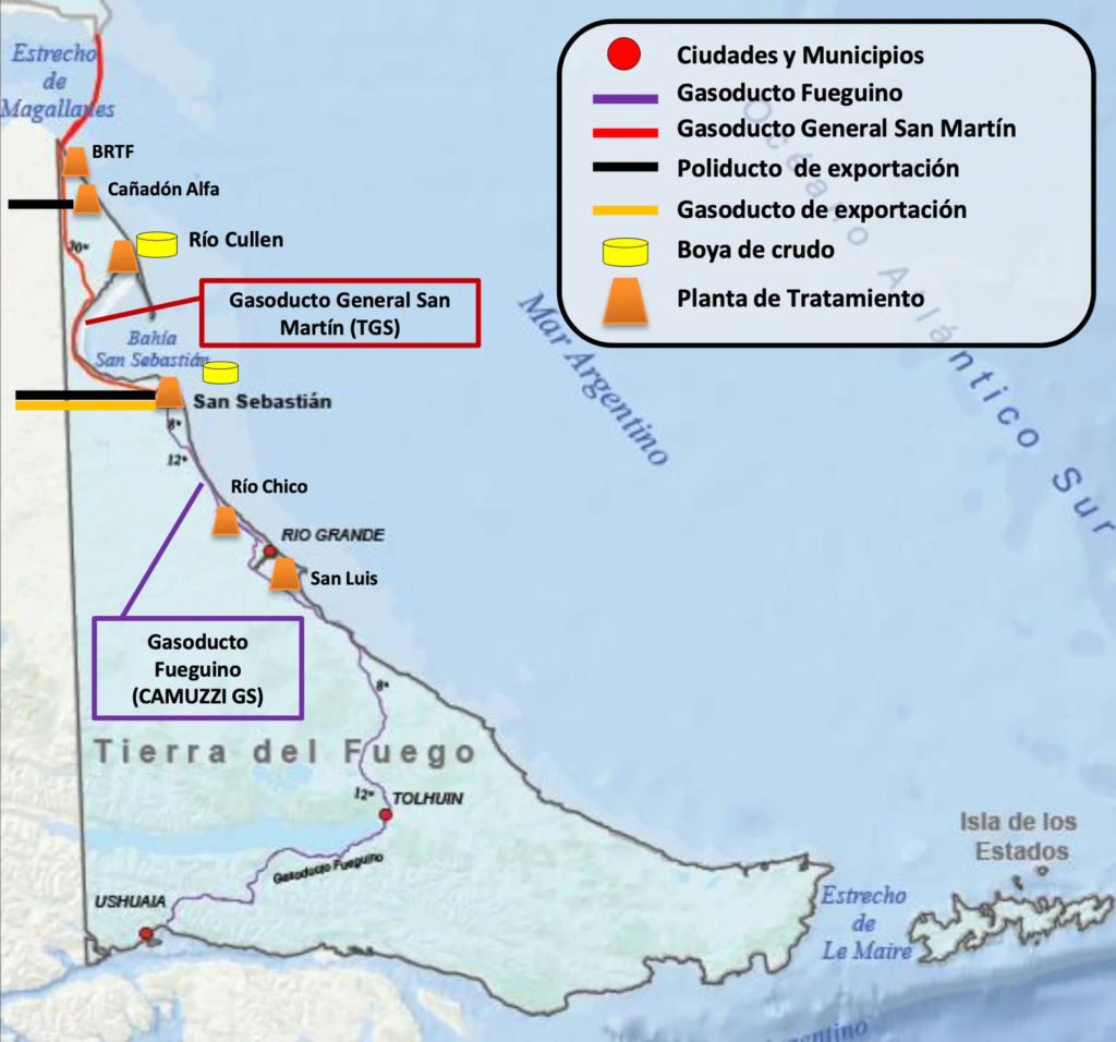 La realidad es muy distinta. Hace poco se terminó de construir, al ingreso de Punta San Sebastián, un bypass que comunica el Gasoducto San Sebastián – Río Grande (GSM) y el Gasoducto Fueguino. La obra fue ejecutada por Camuzzi Gas con soporte de seguridad y permisos de trabajo de YPF.